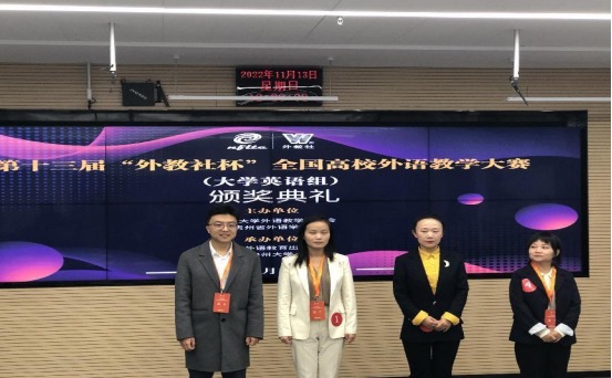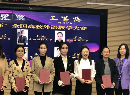 2022年11月12日至13日,第十三届“外教社杯”全国高校外语教学大赛(大学英语组)贵州赛区复赛、决赛在贵州大学成功举办,代表贵州民族大学参赛的欧冠联赛联赛竞猜教师荣获佳绩:田甜副教授获一等奖、罗亚讲师获三等奖。特此祝贺!