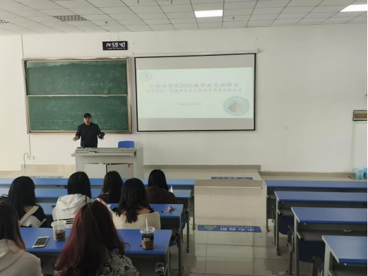 为切实做好2025届毕业生就业工作,努力搭建毕业生和用人单位双向选择平台,欧冠联赛联赛竞猜于2024年10月25日下午在530室举办了宣讲会,邀请了永康市久久太阳电子商务有限公司总经理郎伟建作宣讲。2025届全体毕业生及班主任参加了招聘会。