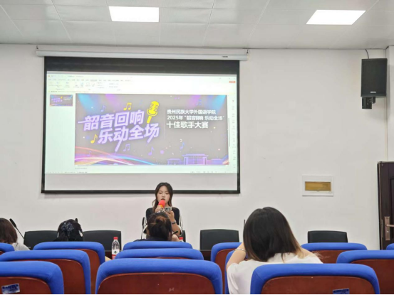 10月10日晚上18点,贵州民族大学“韶音回响 乐动全场”十佳歌手大赛欧冠联赛联赛竞猜初赛在416室举行。此次活动由学院团委主办、团委学生会协办,旨在认真落实校级赛事部署、丰富校园文化。