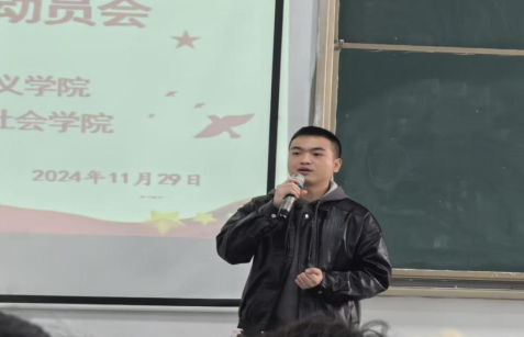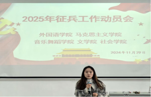 击鼓催新征,扬帆再起航。为积极响应国家大学生征兵入伍号召,切实做好征兵工作,2024年11月29日下午,在北校区欧冠联赛联赛竞猜616阶梯教室,欧冠联赛联赛竞猜、马克思主义学院、音乐舞蹈学院、文学院和社会学院联合举行了2025年征兵工作动员会。