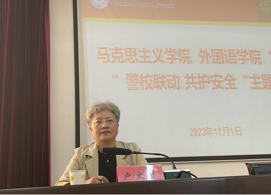 讲座的最后,我院党委书记卢文芸作总结发言。她强调,感谢松山派出所对我校学生安全工作的长期关心和支持,并希望同学们能通过讲座内容切实使安全教育入脑入心,真正达到“警校”互动,共筑校园安全。希望同学们明大德守公德严私德,洁身自爱,遵规守纪,不要触碰法律法规的底线,时刻牢记自己就是自身安全的第一责任人,立志做有理想、敢担当、能吃苦、肯奋斗的新时代好青年,努力成为堪当民族复兴大任的时代新人,积极为构建和谐平安校园贡献青春力量。