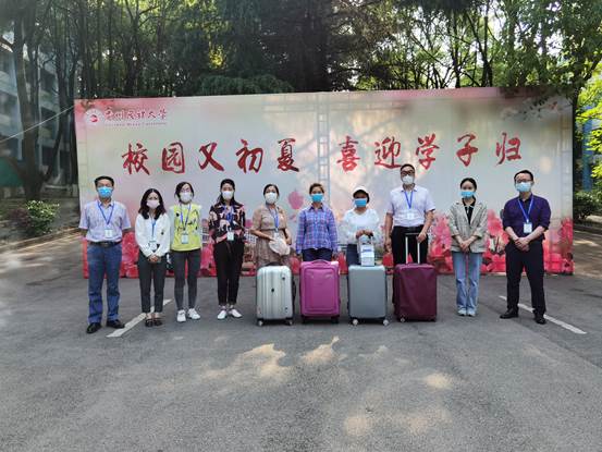2020年5月15日,根据学校关于毕业班级学生返校考试的相关工作安排,我院领导高度重视,成立专门工作组,制定工作方案,在刘兴明副书记、禄颖副院长、张广勇副院长的带队下,与韩玉老师、辛雅婷老师、王梦菁老师、刘俊老师一同到学校办公楼门口“一对一”接待,关心、慰问返校学生,帮助学生搬运行李,深入宿舍与各专业毕业生亲切交谈,进行学校疫情防控的再宣传和再教育。刘兴明书记、禄颖副院长、张广勇副院长还对学生假期疫情的自我防控和学习工作安排特别是线上教学等情况进行深入了解,并嘱咐学生严格遵守学校关于疫情防控的规章制度,做好个人防护,不离校、不聚集、不串门,切实提高自身保护意识。
