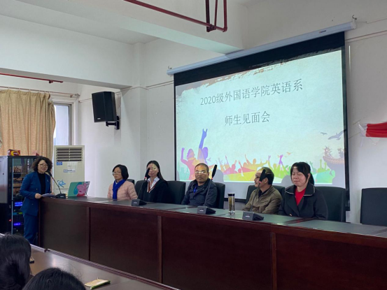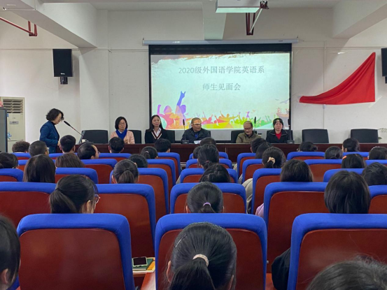 我院于2020年10月16日下午四点在11楼1109会议室召开英语专业2020级新生见面会。我院院长肖唐金、副院长张广勇以及学院英语系全体教职工出席,英语系系主任赵艳老师主持,英语专业2020级全体新生参会。