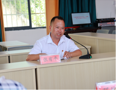 3. 秀地村第一书记兼驻村工作队副队长周庆伟简要介绍金堡镇驻村情况,分享驻村工作经验,提出期许。