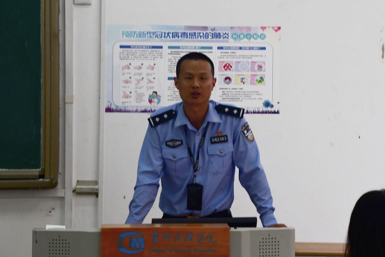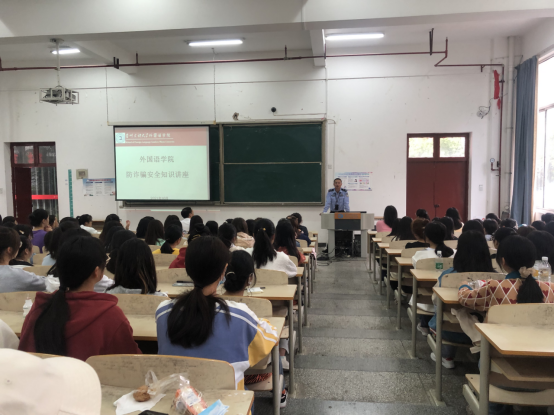 为加强新生的安全防诈骗意识,保障自身财产安全,2021年10月10日,我院在花溪校区十五号教学楼101教室举行防诈骗安全知识讲座。我院党委副书记刘兴明、院长肖唐金出席,辅导员、新生班主任及2021级全体新生及专升本学生(179人)参加讲座。讲座由松山派出所赵普林主讲。