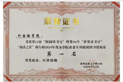 自“世界读书日”系列活动开展以来,欧冠联赛联赛竞猜积极响应学校号召,激发师生阅读热情,营造了浓厚的书香氛围,在“2024年度各学院读者生均纸质图书借阅量”评比中荣登全校第一。外国语学院副院长禄颖出席“读书日”活动并代表学院领奖。